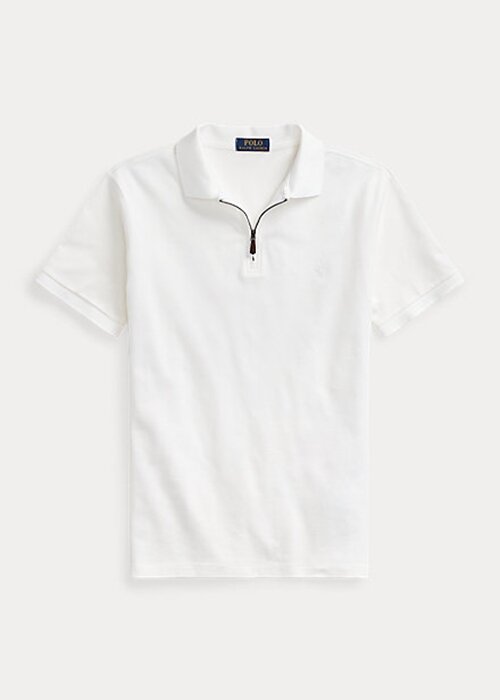 White Men’s Ralph Lauren Stretch Mesh Zip Polo Shirts