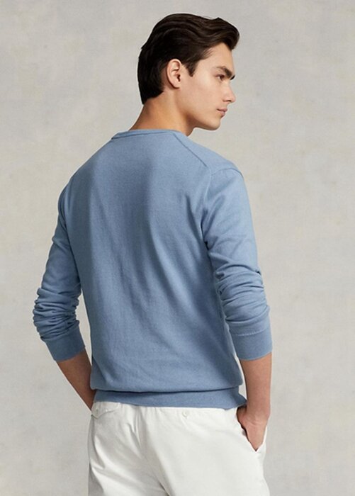 Blue Men’s Ralph Lauren Slim Fit Textured Cotton Jumper Sweaters