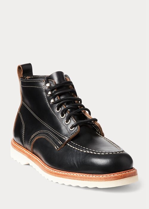 Black Men’s Ralph Lauren Leather Lace-Up Boots