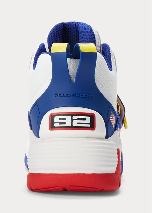 Inspired by classic basketball shoes of the ’90s, the high-top silhouette of the PS100 is constructed with a substantial EVA midsole and TPU reinforcement at the heel. Paneled with leather, suede, and mesh, it features a hook-and-loop strap at the vamp accented with Polo Sport’s iconic logo.
