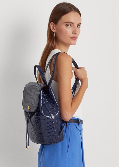 Refined Navy Women’s Ralph Lauren Embossed Leather Medium Winny Backpacks