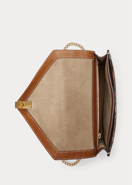 Part of the Polo ID collection, which is inspired by a sense of adventure, romance and optimism, this cotton crochet and Italian leather-trim bag merges the structural elegance of an envelope silhouette with a highly versatile chain link-and-leather strap and features slightly raised bombé detailing and topstitching inspired by equestrian crafting. It is finished with a magnetic teardrop slide lock showcasing the silhouette of our signature Pony cut out on gold-tone brass hardware reminiscent of vintage ID bracelets.