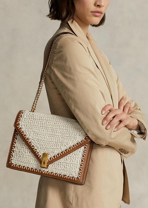 Parchment Cream Women’s Ralph Lauren Polo ID Crochet Envelope Chain Crossbody Bags