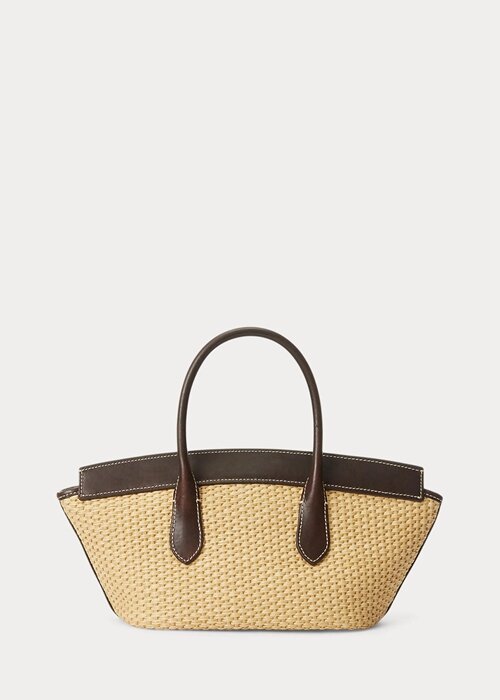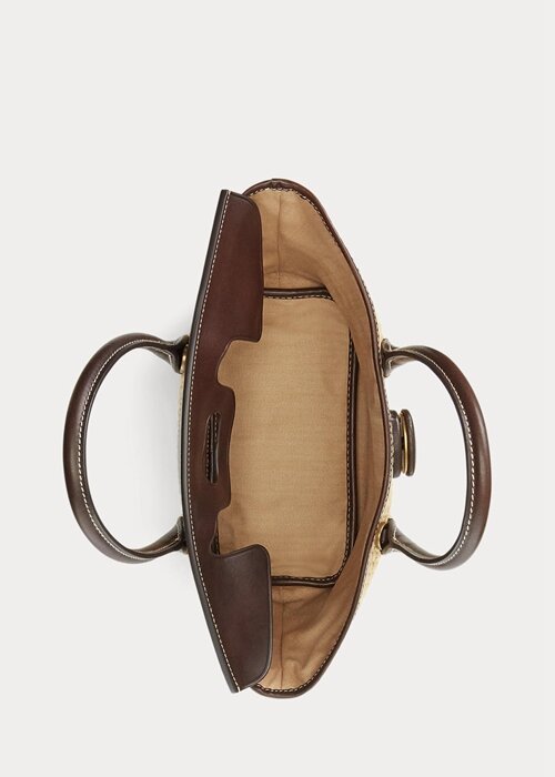 Defined by a fold-over flap and an elegant turn-lock closure with an embossed signature Pony, this streamlined satchel combines straw with contrast full-grain leather detailing and a canvas-lined interior.