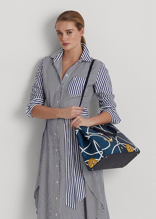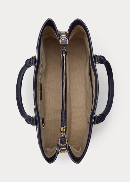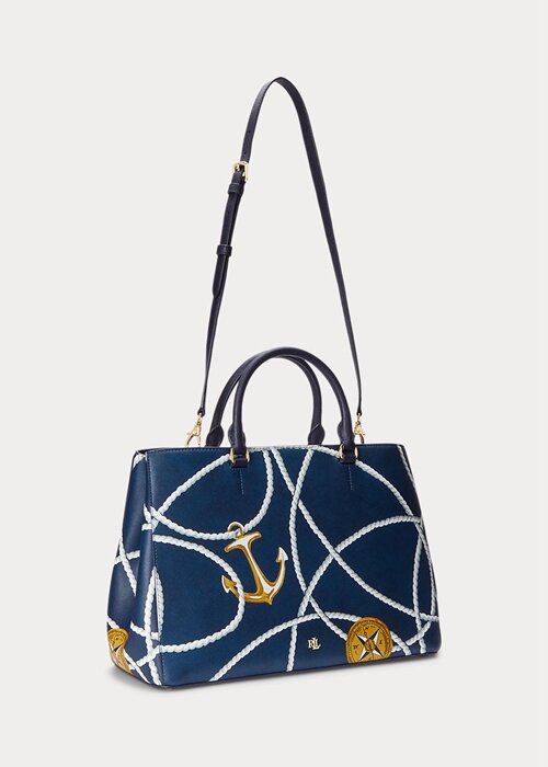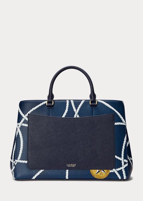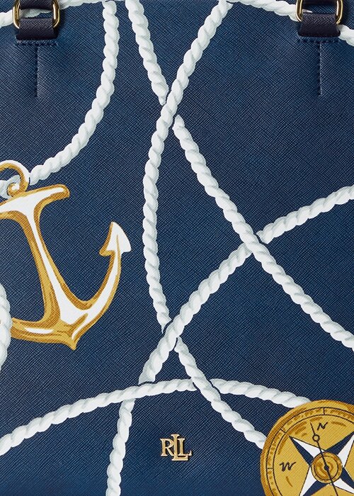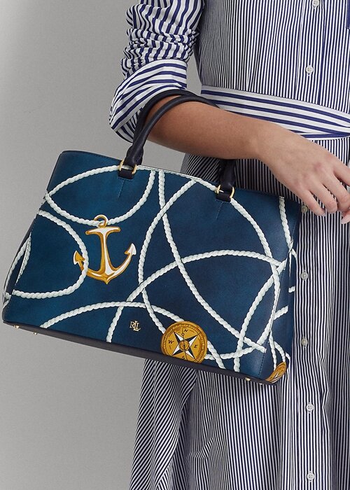 Nautical Rope Print Women’s Ralph Lauren Crosshatch Leather Large Hanna Satchel Bags