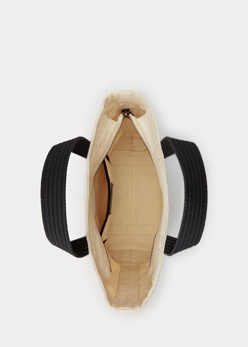 Ecru/Black Women’s Ralph Lauren Canvas Small Polo Bear Tote Bags