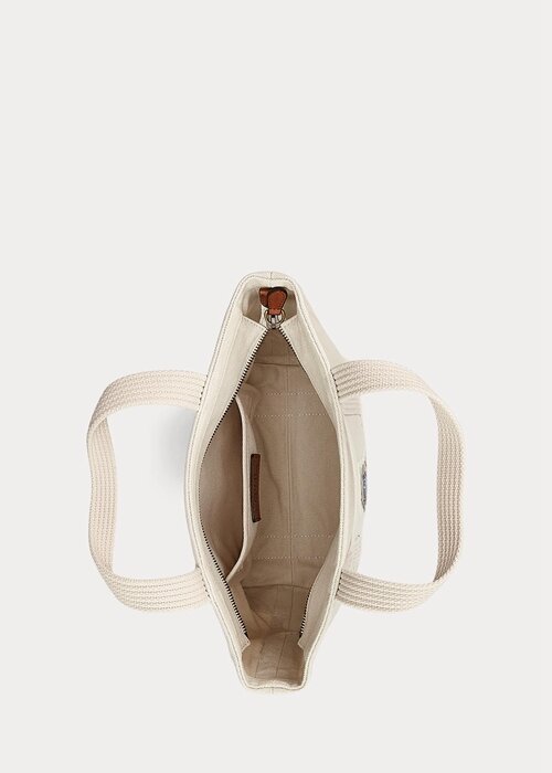 Ecru Multi Women’s Ralph Lauren Canvas Small New Orleans Polo Bear Tote Bags