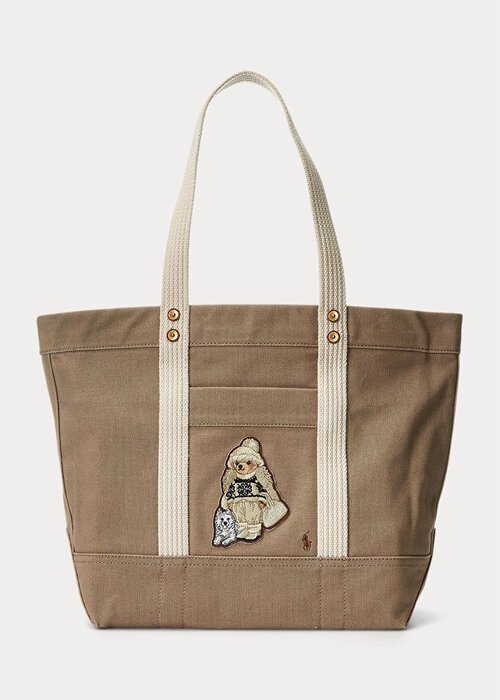 Madison Tan Women’s Ralph Lauren Canvas Medium Polo Bear Tote Bags