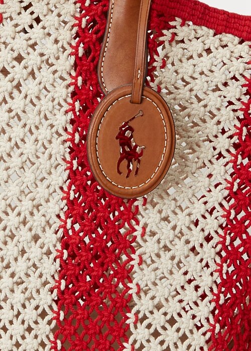 Ruby/Natural Women’s Ralph Lauren Striped Woven Large Bellport Tote Bags
