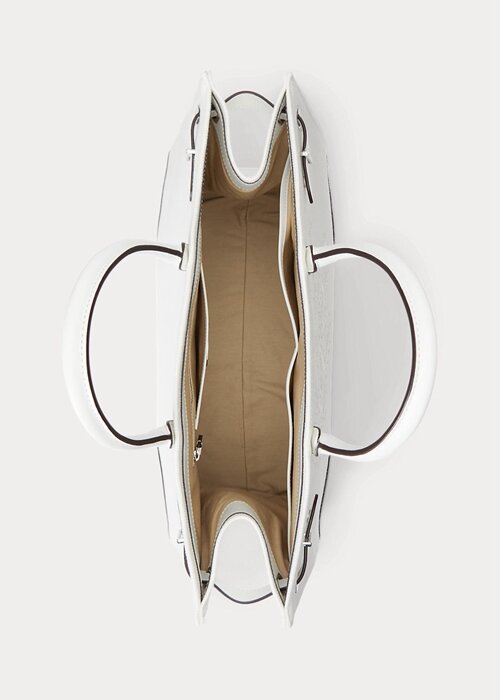 White/White Women’s Ralph Lauren Eyelet Canvas Large Devyn Tote Bags