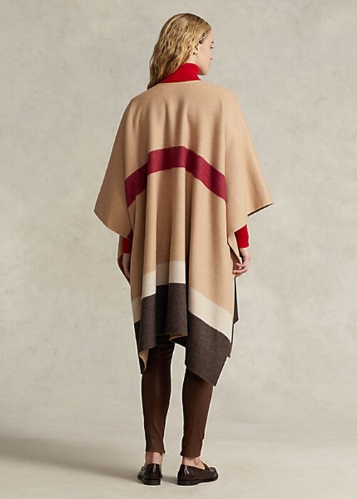 Brown Women’s Ralph Lauren Polo ID Striped Double-Faced Poncho Jackets