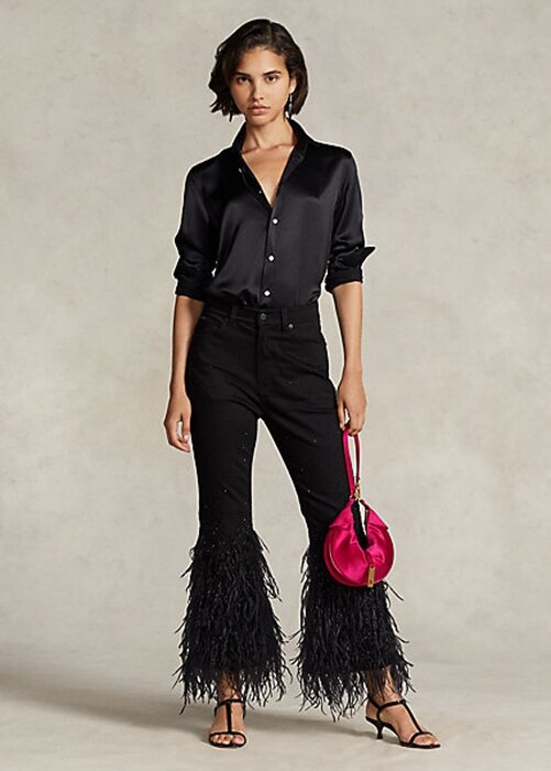 Be the first to review “Black Women’s Ralph Lauren Beaded Feather-Trim High-Rise Flare Jeans”