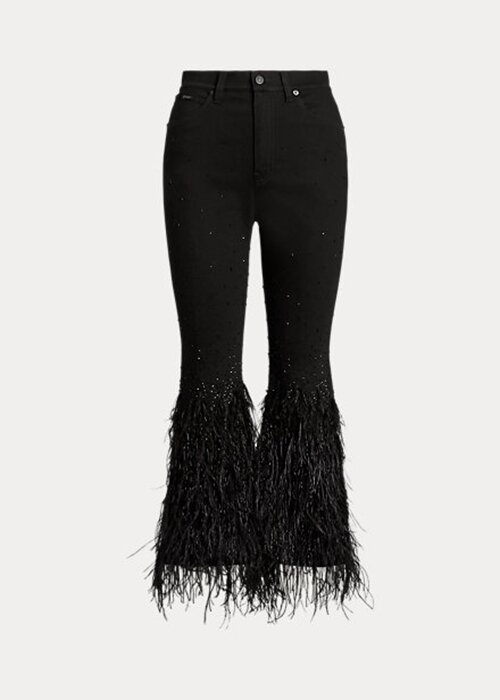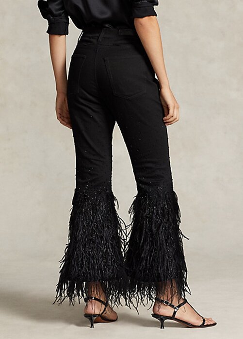 Black Women’s Ralph Lauren Beaded Feather-Trim High-Rise Flare Jeans