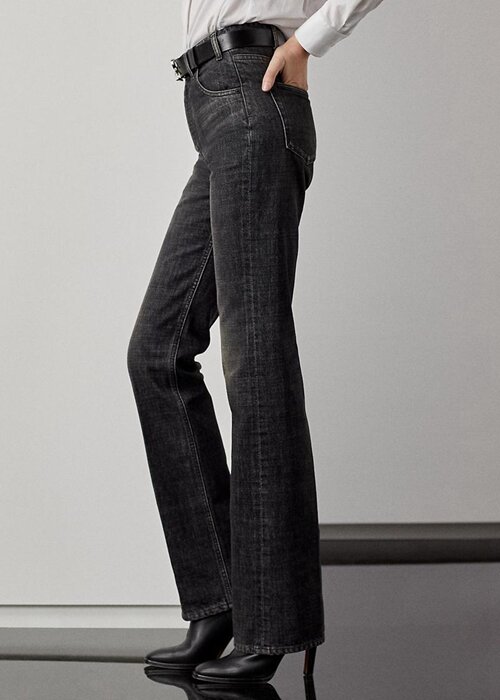 Designed with a high rise and a relaxed bootcut silhouette, the Kaida jean draws inspiration from the traditional cowboy denim trouser – one of the earliest examples of technical sportswear. Cut from yarn-dyed cotton denim that’s lightly washed and detailed with subtle abrasions for a worn-in look, this Italian-made pair is finished at the coin pocket with a leather tab and on the back with a “Ralph Lauren”-debossed leather patch, each accented with polished black studs.