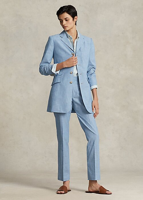 Blue Women’s Ralph Lauren Chambray Kick-Flare Cropped Pants