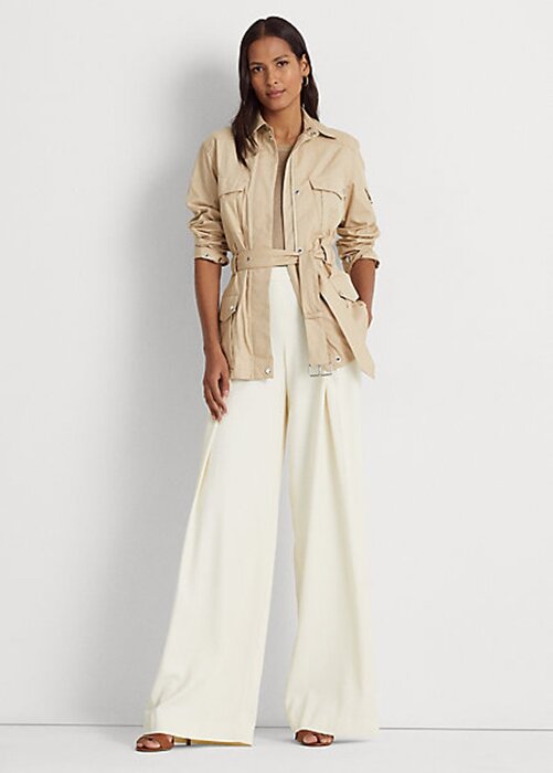 Cream Women’s Ralph Lauren Pleated Crepe Wide-Leg Pants