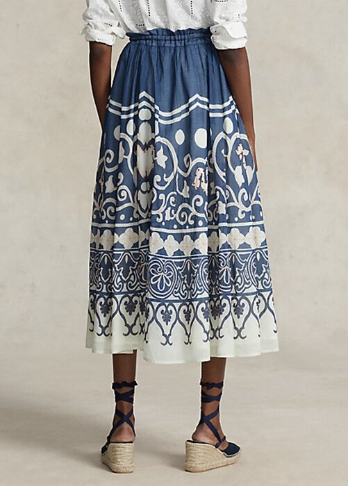 Blue / White Women’s Ralph Lauren Print Beaded Voile A-Line Skirts