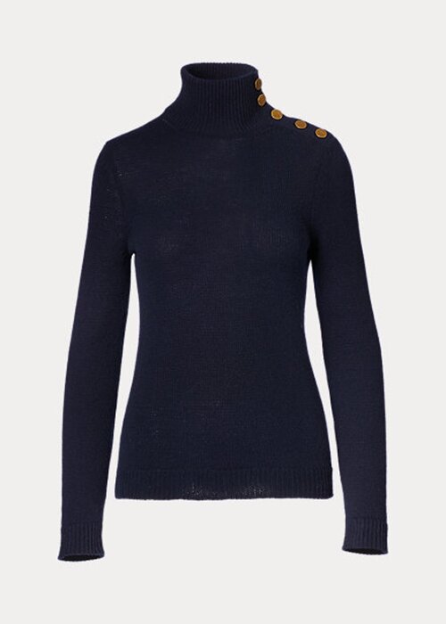 Navy Women’s Ralph Lauren Buttoned Cashmere Turtleneck Sweaters