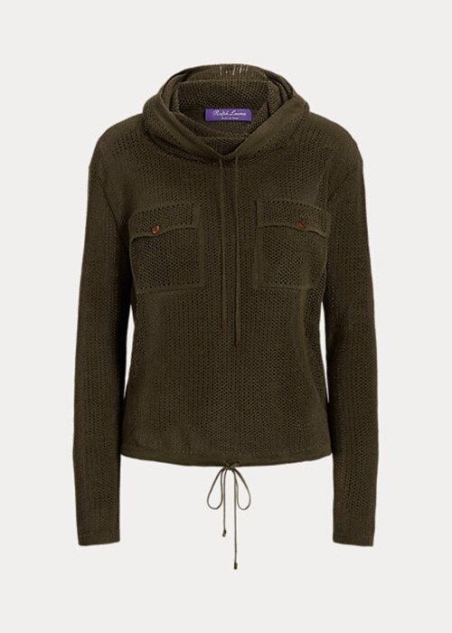 Olive Women’s Ralph Lauren Funnelneck Silk-Linen Mesh Sweaters