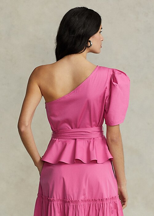 Fuchsia Women’s Ralph Lauren Belted One-Shoulder Cotton Tops