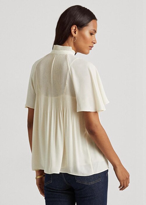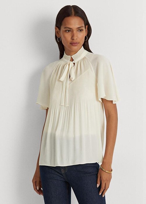 White Women’s Ralph Lauren Pleated Georgette Tops