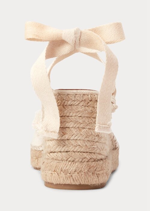 Cream Women’s Ralph Lauren Fringe-Trim Canvas Wedge Flat Shoes